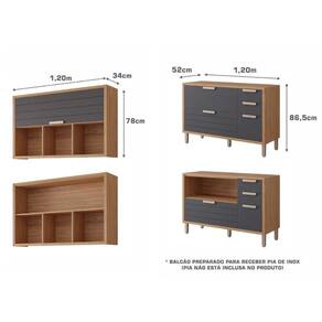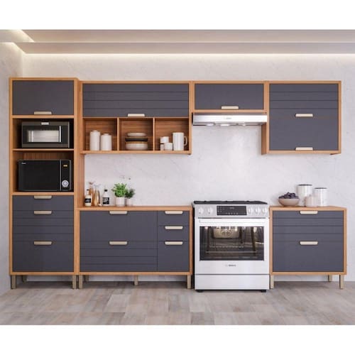 Cozinha Compacta 6 Pçs 3 Aéreos 2 Balcões 1 Torre Quente 2 Nichos Eloise Mgm Freijó/Titanium