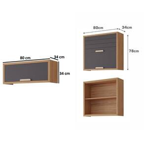 ARMÁRIO AÉREO DE COZINHA 100%MDF 80CM 2 PORTAS BASCULANTES ELOISE MGM MÓVEIS FREIJÓ/TITANIUM
