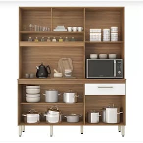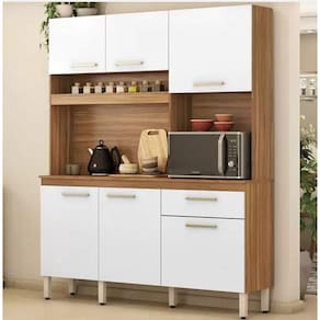 Cozinha Compacta Alamo, com distribuição pensada para se ter o máximo de aproveitamento interno, estrutura em MDP de 15mm e 12mm, acabamento em pintura UV. Equipada com 06 portas largas articuladas com dobradiças metálicas, 01 gaveta grande com corrediças metálicas, puxadores modernos e resistentes na cor champanhe, espaço para forno ou microondas e um amplo nicho garantem o visual moderno e elegante, destaque para o nicho porta tempero externo que garante mais praticidade na sua rotina, a parte interna conta com prateleiras e compartimentos muito bem divididos para você guardar alimentos, panelas, eletroportáteis, louças entre outros utensílios de forma organizada, o visual moderno oferece sofisticação e bom gosto para a decoração da sua cozinha, acompanha pés com regulagem de altura e um kit de ferragens de qualidade garantindo durabilidade e resistência ao móvel. Este móvel chegará em sua casa separado em 02 volumes.