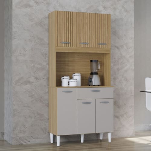 A Cozinha Compacta 6 Portas 1 Gaveta Cassia Poquema é ideal para espaços reduzidos, oferecendo funcionalidade e organização. Conta com 6 portas, 1 gaveta, estrutura em MDP 12 mm, acabamento em pintura UV, corrediças e dobradiças metálicas, além de pés e puxadores de plástico.