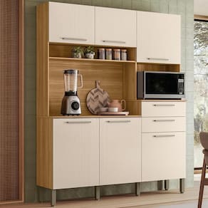 Perfeita para otimizar ambientes com praticidade e estilo, a Cozinha Compacta é produzida em MDP de 12mm e 15mm. Possui 06 portas e 02 gavetas com dobradiças e corrediças 100% metálicas, além de nichos decorativos, prateleiras internas e um espaço funcional para micro-ondas. Os pés reguláveis e os puxadores são fabricados em plástico resistente (poliestireno e polipropileno), assegurando conforto no uso e estabilidade. O acabamento em pintura UV (fosco ou semibrilho) completa o visual moderno do móvel. Este móvel chegará em sua casa separado em 03 volumes.