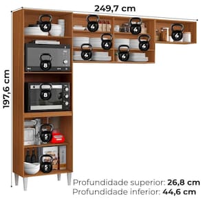 A Cozinha Compacta Atenas é a escolha ideal para quem busca eficiência e bom aproveitamento do espaço. Produzida em MDP 12/15 mm (fundo 3 mm) com acabamento em Verniz Texturizado. Composto por portas com dobradiças metálicas (sendo uma com amortecedor a gás), puxadores plásticos, nichos decorativos funcionais e espaço ideal para microondas e/ou forno (A.39,1 cm x L.57,6 cm x P.44,6 cm). Este produto será entregue em 01 volume.