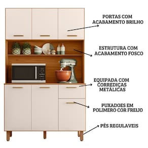 A Cozinha Compacta Livi é a solução ideal para quem busca praticidade e estilo. Com 6 portas de bater e 1 gaveta com corrediças metálicas 30mm, oferece amplo espaço de armazenamento e se destaca pelo detalhe ripado gráfico nas portas superiores, que agrega um toque moderno ao ambiente. Além disso, conta com um nicho organizador decorativo (A.19 x L.108 x P.13 cm) e um espaço perfeito sobre o balcão (A.40 x L.108 x P.26 cm) para aparelhos e utensílios domésticos. Para maior resistência e praticidade, o produto conta com dobradiças metálicas reforçadas de 26 mm, puxadores em polímero ouro fosco e pés reguláveis em PVC de 17 cm, garantindo o nivelamento ideal e um acabamento sofisticado. Sua estrutura em MDP 15mm e portas com pintura UV acetinada oferecem não apenas durabilidade, mas também um acabamento fácil de limpar. Ideal para quem busca aliar estética e praticidade, transformando a cozinha em um espaço agradável e eficiente. Este móvel chegará em sua casa separado em 1 volume.