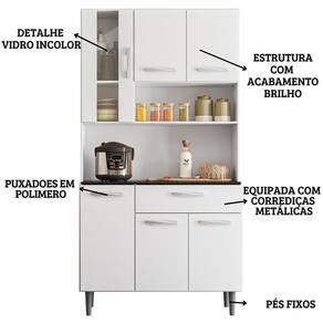 A Cozinha Compacta Coral destaca-se por sua praticidade e eficiência de uso, podendo ser utilizado em qualquer ambiente ou até mesmo como complemento de cozinha. Possui 01 porta com detalhe em vidro além de mais 05 portas de bater proporcionando amplo espaço interno, 01 gaveta com corrediças metálicas, espaço para eletrodomésticos, nicho organizador decorativo A.22cm x L.58cm x P.27cm, puxadores em polímero, pés PVC fixos de 13cm. Estrutura em MDP 15mm Perffect Touch de maior resistência e portas MDP 12mm em pintura UV. Ideal para quem busca aliar estética e praticidade, transformando a cozinha em um espaço agradável e eficiente. Este móvel chegará em sua casa separado em 1 volume.
