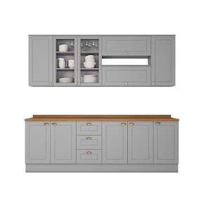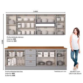 Composicao do Kit (AxLxP): 1 Aereo 03 Portas 83 x 120 x 32,5 Cm; 2 Aereo 01 Porta Basc. 34 x 80 x 32,5 Cm; 1 Aereo 01 Porta 83 x 40 x 32,5 Cm; 1 Balcao Pia 02 Portas e 03 Gavetas 82 x 120 x 51 Cm; 1 Balcao 02 Portas 82 x 80 x 51 Cm; 1 Balcao 01 Porta 82 x 40 x 51 Cm; 1 Tampo 2,5 x 120 x 53,5 Cm; 1 Tampo 2,5 x 80 x 53,5 Cm; 1 Tampo 2,5 x 40 x 53,5 Cm;