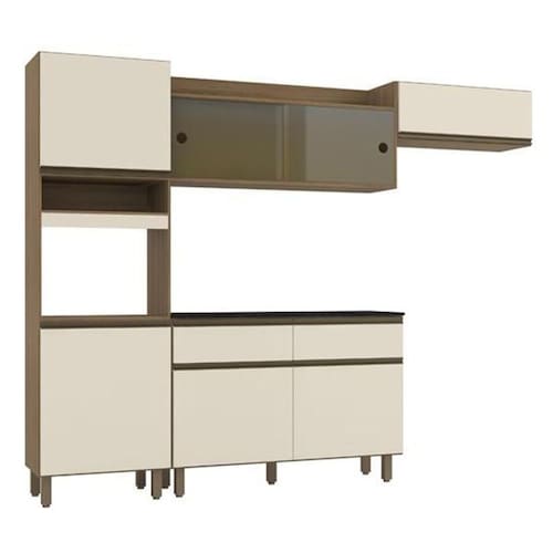 Produto: Cozinha Compacta 7 Portas 2 Gavetas Com Balcão Tampo Carvalho/Off White - Poliman A Cozinha Compacta 7 portas 2 gavetas com balcão tampo da Poliman Móveis foi desenvolvida para trazer um designer moderno com qualidade e praticidade ao seu ambiente, com altura e profundidade diferenciadas é composta por um paneleiro com espaço para micro-ondas além de duas portas, prateleira interna e nicho decorativo. Armário aéreo com duas portas de correr em vidro reflecta, detalhe que traz beleza e sofisticação ao produto e nicho superior aberto prático para o dia-a-dia para armazenamento ou decoração. Possui também armário aéreo 1porta basculante com pistão a gás para melhor aproveitamento de espaço que pode ser utilizado sobre fogão ou geladeira, além de acompanhar balcão 2portas 2gavetas com tampo, prateleira interna em L para acomodar objetos maiores ou até mesmo botijão de gás. Possui puxadores perfil em polímero e pés reguláveis ao piso permitindo o nivelamento perfeito na montagem. Produto em MDP com acabamento em pintura UV madeirada na estrutura e off white brilho nas portas e gavetas. Ideal para quem deseja eficiência e funcionalidade. Perfeita combinação com os mais variados ambientes. Qualidade que só a Poliman oferece em seus produtos. Diferenciais do Produto: Portas de correr com vidro reflecta, puxadores perfil em polímero, pistão a gás no basculante, espaço para micro-ondas, balcão 2portas 2gavetas com tampo. Cor: Carvalho/Off White Linha: Porto Ambiente: Cozinha Escala de Brilho: fosco/brilhante Material: MDP 12mm/15mm Acabamento: Pintura UV Quantidade, Tipo e Material da Corrediça: 2; aço; metálicas Quantidade e Material da Corrediça: 10; aço Quantidade de Gaveta: 2 Quantidade e Tipo de Porta: 2 de correr / 4 de bater / 1 basculante com pistão a gás Quantidade de Prateleira: 2 Quantidade e Tipo dos Pés: 9 ; regulável; plástico Quantidade e Material do Puxador: 7 ; perfil em polímero Sistema de Montagem: Parafusos, pregos, cavilhas. Nível de Montagem: médio Recomendações: Para limpeza utilize pano macio levemente umedecido e na sequência pano seco. Não usar produtos químicos ou abrasivos para a limpeza. Peso Suportado (aprox.): 77 Garantia: 3 Itens Inclusos: Cozinha Porto 3 peças (paneleiro, aéreo 1200mm, aéreo basculante), balcão 2 portas 2 gavetas com tampo , acessórios e manual de montagem. Altura (cm): 200 Largura (cm): 260 Profundidade (cm): 37,5 Peso produto montado (kg): 80,5