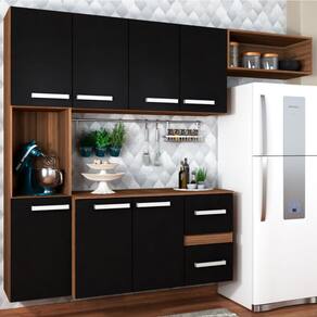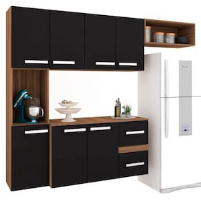 O(a) Cozinha Compacta 7 Portas 2 Gavetas Suspensa Armário e Balcão Jéssica Teka/Grafite - Loja é produzido em MDP na escala de brilho Fosco, e possui um grau de dificuldade de montagem: Fácil.