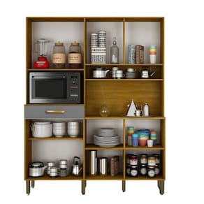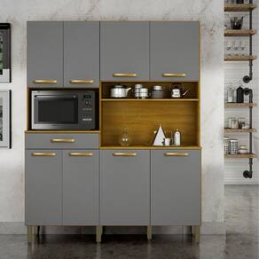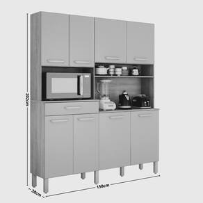 Características: 1 Gaveta com corrediça telescópica 8 Portas Dobradiças metálicas Espaço para Micro-ondas: 390mm -A- x 650mm -L- x 380mm -P- Estrutura em MDP de 12mm e 15mm Indicação de uso, cozinhas pequenas e médias Pés reguláveis, ideais para nivelamento Puxadores ABS Revestimento em Pintura UV Tampo Incluso, sim