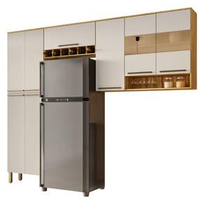 Produzida em MDF de alta qualidade, o que garante maior durabilidade e resistência ao produto, a cozinha também conta com acabamento em pintura UV. Esse tipo de pintura confere maior proteção contra riscos, manchas e desgaste, além de realçar o visual moderno nas cores Amêndoa e Off White, que harmonizam perfeitamente em qualquer estilo de decoração, proporcionando um ambiente sofisticado e contemporâneo.