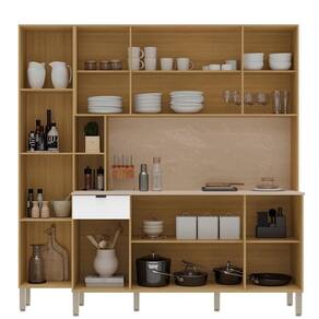 Perfeita para otimizar ambientes com praticidade e estilo, a Cozinha Compacta é produzida em MDP de 12mm e 15mm. Possui 09 portas equipadas com dobradiças com amortecimento, que garantem um fechamento suave e silencioso. As portas superiores são do tipo passante e a do paneleiro lateral possui sistema de fecho toque, dispensando puxadores. Além disso, o design conta com 01 gaveta com corrediças telescópicas 100% metálicas, nicho decorativo e prateleiras internas. Os pés reguláveis são fabricados em plástico resistente, e os puxadores em alumínio. O acabamento em pintura UV (fosco ou semibrilho) completa o visual moderno do móvel. Este móvel chegará em sua casa separado em 03 volumes.