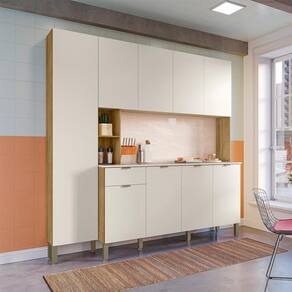 Perfeita para otimizar ambientes com praticidade e estilo, a Cozinha Compacta é produzida em MDP de 12mm e 15mm. Possui 09 portas equipadas com dobradiças com amortecimento, que garantem um fechamento suave e silencioso. As portas superiores são do tipo passante e a do paneleiro lateral possui sistema de fecho toque, dispensando puxadores. Além disso, o design conta com 01 gaveta com corrediças telescópicas 100% metálicas, nicho decorativo e prateleiras internas. Os pés reguláveis são fabricados em plástico resistente, e os puxadores em alumínio. O acabamento em pintura UV (fosco ou semibrilho) completa o visual moderno do móvel. Este móvel chegará em sua casa separado em 03 volumes.
