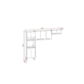 A Cozinha Versalhes traz a praticidade e funcionalidade que você precisa, suas portas superiores se tornam o diferencial do produto pelo vidro, trazendo o destaque para a cozinha. Suas repartições bem elaboradas podem acomodar todas as suas necessidades para com uma cozinha, além de dispor de um nicho para micro ou forno elétrico. Sua matéria prima vem de madeiras de reflorestamento se tornando uma peça de design e responsabilidade com o meio ambiente.