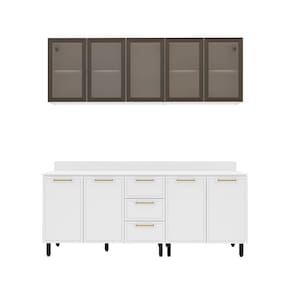 O(a) Cozinha Compacta Amara 9 Portas 3 Gavetas com Vidro Branco - Politorno é produzido em MDF e MDP na escala de brilho Semi-Brilho, e possui um grau de dificuldade de montagem: Médio.