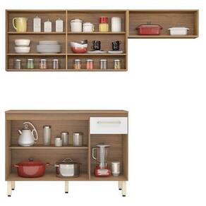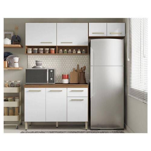 Cozinha Compacta Ambiente Dama Aéreos e Balcão Amêndola Branco - Demóbile