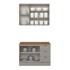 O(a) Cozinha Compacta Americana 5 Portas 3 Gavetas 100% Mdf Cinza/Nature - Henn é produzido em 100% MDF e MDF na escala de brilho Fosco, e possui um grau de dificuldade de montagem: Médio.