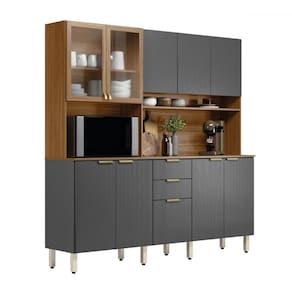 O(a) Cozinha Compacta Amora 10 Portas 2 Gavetas Amêndola Touch/Grafito Prime Tx - Demóbile é produzido em MDP na escala de brilho Fosca com Textura, e possui um grau de dificuldade de montagem: Médio.