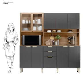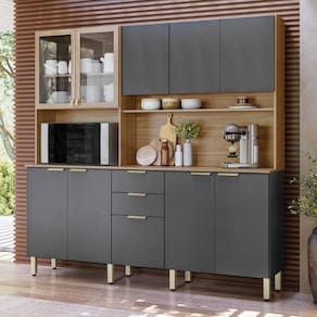 Altura:: 200cm | Largura:: 198cm | Comprimento:: 45cm | Requer montagem?:: Sim | Materiais do Corpo:: MDP | Modelo:: Armário de Cozinha | Cor:: Amendola/Nude Tx | Tipo de Móvel:: Cozinha Completa Cor: Amendola/Grafito Tx