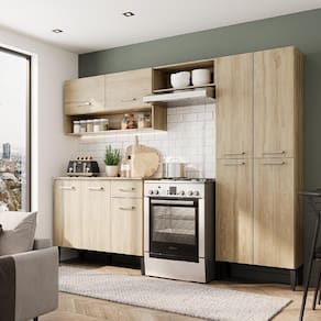 A Cozinha Compacta Arizona Classic da Carraro é o item perfeito para quem está procurando funcionalidade, organização e estilo para ambientes compactos. O produto é composto por um paneileiro com 4 portas, um balcão de pia com gaveiteiro, um armário aéreo e um nicho.