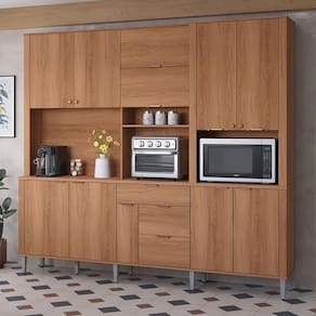 10 portas com prateleiras internas, ideais para utensílios, louças e mantimentos