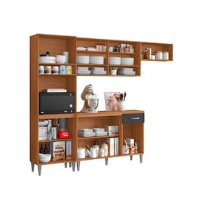 Cozinha Compacta Aurora com Balcão 120cm com Tampo Cinamomo Grafite Aramóveis - Cinamomo | Grafite