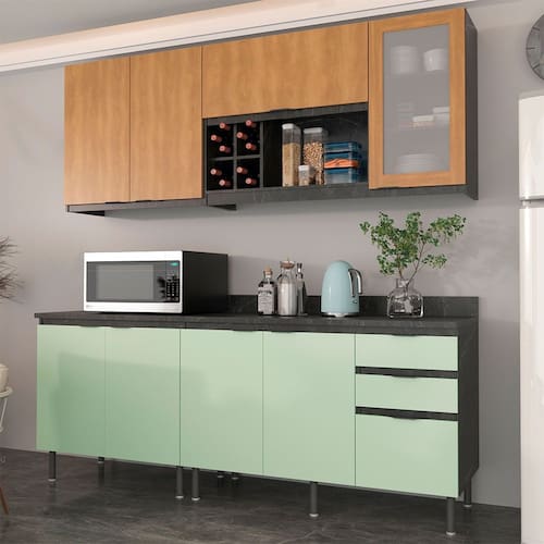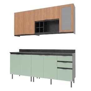 Itens Inclusos: (CZ1200) 01 Balcão de 120cm 01 Tampo de 120cm 01 Balcão de 80cm 01 Tampo de 80cm 01 Aéreo de 120cm com Porta de Vidro 01 Aéreo de 80cm