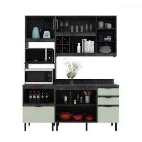 O(a) Cozinha Compacta Begônia 6 Portas 4 Gavetas com Vidro Mármore Lunar/Verde Mar/Freijó - Tecno Mobili é produzido em MDP na escala de brilho Semi-Brilho, e possui um grau de dificuldade de montagem: Médio.