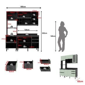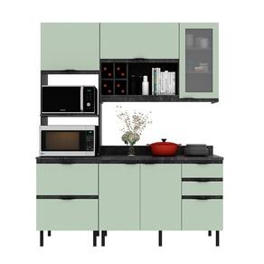 Cozinha Compacta Begônia CZ1203 180cm 03 Peças 06 Portas 04 Gavetas com Divisor de Talheres Mármore Lunar Verde Mar Tecnomobili
