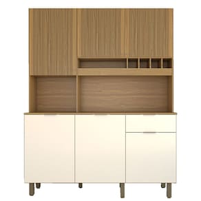 - Portas superiores com acabamento usinado de baixo relevo (frisado) no estilo ripado.