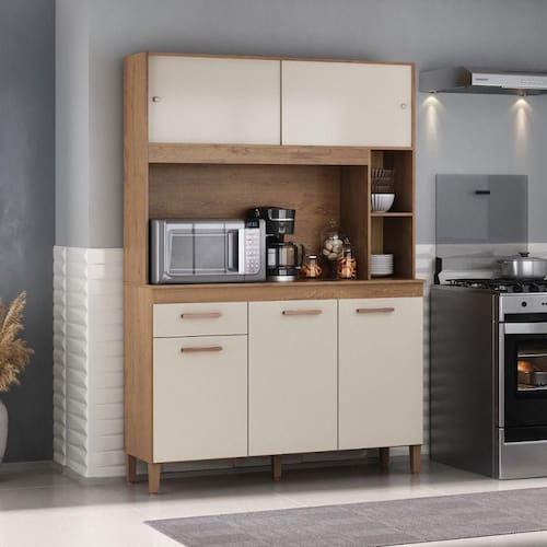 A Cozinha Ceara e estruturada por pecas essenciais para o seu cotidiano, isso porque ela ela oferece um design funcional de primeira, espaco interno para a organizacao de utensilios, mantimentos e eletroportateis, excelente durabilidade e uma coloracao incrivel que combina facilmente com a decoracao da sua casa.
