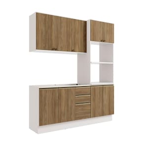 Complete sua cozinha com toda a beleza e praticidade que o Combo CB1299 da Cozinha Celeste da Kappesberg oferece. Compacto e funcional, ele conta com as divisórias perfeitas para manter seu espaço sempre organizado. Produzida em MDF de 15mm, o que proporciona robustez, firmeza e qualidade, além de um acabamento perfeito, o combo possui três peças, encaixando facilmente em todos os ambientes. E com até sete camadas de pintura, a caixaria é em pintura na cor branca e acabamento brilho, enquanto as frentes são na cor nogueira, com pintura touch. Uma combinação linda e aconchegante, perfeita para compor a sua cozinha de um jeito único, e remetendo aos tons da natureza, você terá o espaço ideal para preparar suas receitas com praticidade. Com módulo para eletrodomésticos, o kit forno e microondas possui prateleiras reforçadas em 25mm, garantindo o máximo de segurança. Com três peças, o conjunto possui 2,30m de altura e 1,92m de largura, uma ótima opção para quem possui pouco espaço mas não abre mão de organização. E para um melhor acabamento, o combo possui pés, mas acompanha as ferragens para ser montado suspenso na parede, deixando sua cozinha do seu jeito. Os diferenciais ficam por conta das dobradiças com amortecimento, garantindo um fechamento suave e sem ruídos, das corrediças telescópicas e os puxadores na cor dourada, com modelos diferentes no balcão e aéreos, completando o estilo e a qualidade do produto. Viva momentos especiais e renove seu espaço com a Cozinha Celeste da Kappesberg.