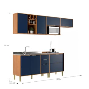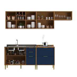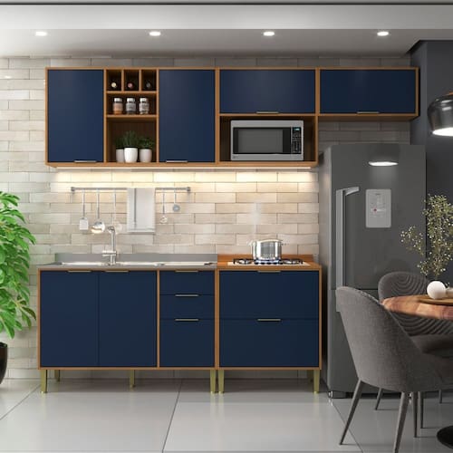 Cozinha Compacta com 6 Portas e 5 Gavetas Domus Espresso Móveis Nogal/Royal - Azul Doce