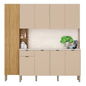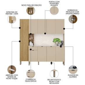 Transforme sua cozinha em um espaço moderno e funcional com o Armário de Cozinha Compacta Com Balcão 200cm Louvre K02 Freijó/Vanilla, da Mpozenato.