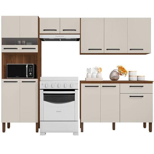O Armário de Cozinha Compacta Com Balcão 251cm Louis K02 Nogueira/Off White, da Mpozenato é a solução perfeita para sua cozinha, principalmente se você se precisa otimizar espaço para que o ambiente fique prático e funcional.
