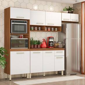 Ele é feito 100% em MDP, possuindo 9 portas,2 nichos, espaço para forno e micro-ondas e 1 gaveta.