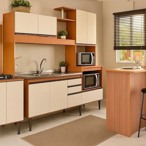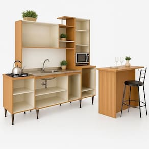 Cozinha Alice Compacta Balcão Cooktop Bancada Ripada – Estilo e funcionalidade no seu dia a dia