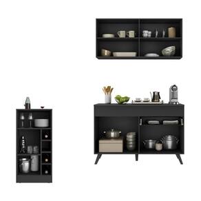 Cozinha Compacta Com Bancada Americana 1 Porta Veneza Multimóveis Mp2207 Preto Preto