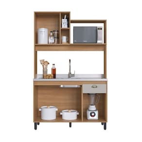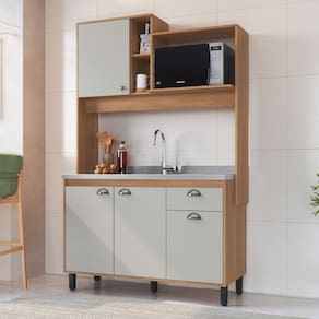 Produzida em MDP de 15mm, possui espaço compatível para micro-ondas, 2 nichos, espaço para tampo ou pia de 1,20m