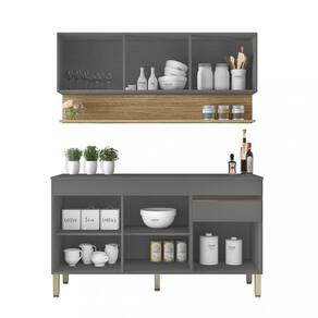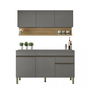 Cozinha Compacta com Tampo 150cm 6 Portas 1 Gaveta Line Kits Paraná - Grafite