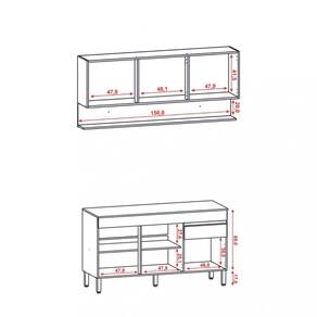 A Cozinha Line 150cm contém amplas divisões e design elegante e funcional. Possui 6 portas -3 no armário superior e 3 no balcão-, 1 gaveta e prateleira. O armário apresenta um sistema avançado de abertura, no qual a porta é maior que a estrutura da base, o que permite abrir as portas sem puxadores. Desenvolvida com MDP de 15mm, possui acabamento com textura sensível ao toque e pintura com secagem em luzes UV.