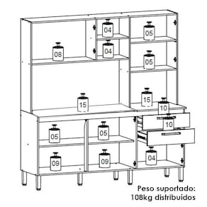 Perfeita para otimizar ambientes com praticidade e estilo, a Cozinha Compacta com tampo é produzida em MDP de 15mm. Possui 07 portas, sendo uma com vidro, e 02 gavetas, equipadas com dobradiças e corrediças telescópicas 100% metálicas. O design conta com nicho decorativo para pequenos objetos, prateleiras internas e um espaço funcional para micro-ondas. Os pés reguláveis e os puxadores são fabricados em plástico resistente, assegurando conforto no uso e estabilidade. O acabamento em pintura UV (fosco ou semibrilho) completa o visual moderno do móvel. Este móvel chegará em sua casa separado em 04 volumes.