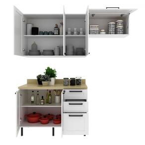 O(a) Cozinha Compacta com Tampo Lúmina 6 Portas 3 Gavetas Branco/Carvalho - Pnr Móveis é produzido em MDF na escala de brilho Semi-Brilho, e possui um grau de dificuldade de montagem: Médio.