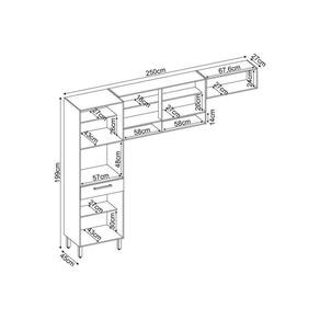 Dimensões(Cm): Comnto(Profundidade): 45cm x Largura: 250cm x Altura: 199cm
