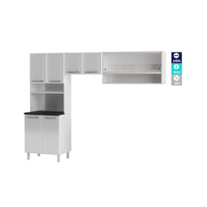 A cozinha completa 67 Topázio Glass é ideal e trará conforto e facilidade para você, ao mesmo tempo que deixará o ambiente muito mais aconchegante e prático. Feita em Aço na cor Branco. Possui 8 Portas (2 de Vidro de Correr), 1 Nicho e 4 Prateleiras. Assim o conjunto oferece tudo que sua cozinha precisa, em menos espaço e muito mais elegância!
