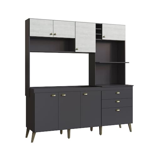 Composta por 8 portas, 2 gavetas, 2 prateleiras e nichos estrat?gicos, a Cozinha Donna proporciona excelente aproveitamento de espa?o. Sua estrutura em MDP com revestimento em impress?o UV garante resist?ncia e durabilidade, enquanto os puxadores em ABS e os p?s com alturas diferenciadas completam o visual com um toque retr? sofisticado.