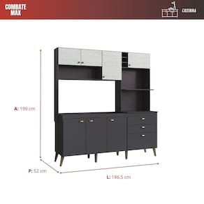 AMPLA CAPACIDADE DE ARMAZENAMENTO: 8 portas, 2 gavetas, 2 prateleiras e nichos para forno e micro-ondas.