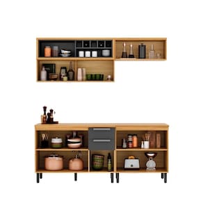 Cozinha Compacta Em Mdf New Porto Grafite 200cm Itatiaia Com design contemporâneo e excelente aproveitamento de espaço, a cozinha compacta New Porto da Itatiaia é a escolha ideal para quem busca praticidade sem abrir mão da sofisticação. Composta por 4 módulos e 200cm de largura total, essa solução é perfeita para ambientes menores ou cozinhas integradas. Fabricada 100% em MDF, conta com pintura eletrostática UV, acabamento grafite com detalhes amadeirados e ferragens resistentes, garantindo durabilidade e beleza no uso diário. A composição inclui: ? Armário aéreo de 120cm com porta horizontal e nichos abertos, ideal para itens decorativos e utensílios de uso frequente; ? Armário aéreo geladeira de 80cm com porta basculante com pistão à gás, projetado para ser instalado acima do refrigerador, otimizando o espaço vertical da cozinha; ? Balcão de 120cm com 3 portas e 2 gavetas, com corrediças metálicas e amplo espaço para organização de panelas, utensílios e mantimentos; ? Balcão de 80cm com 2 portas, ideal como apoio para eletroportáteis ou armazenamento adicional.