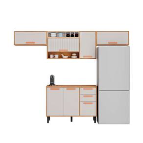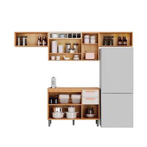 Funcionalidade, elegância e design contemporâneo definem a Cozinha Completa Nápoles da Itatiaia. Com 280cm de largura e 4 módulos bem distribuídos, ela é perfeita para quem busca um ambiente prático e sofisticado, seja em cozinhas compactas ou integradas. Produzida em MDP com acabamento em Off White e Cinamomo, essa composição oferece: Dois armários aéreos geladeira de 80cm com porta horizontal, ideais para instalação sobre o refrigerador ou como armários auxiliares de fácil acesso; Armário aéreo de 120cm com porta horizontal com pistão a gás, porta vertical e nicho com garrafeiro embutido, agregando organização e sofisticação ao espaço; Balcão de 120cm com 3 portas e 2 gavetas, com tampo resistente a até 120C e gavetas com corrediças telescópicas com trava de segurança, ideal para armazenamento de utensílios, mantimentos e itens do dia a dia. Os puxadores exclusivos Rose Gold com acabamento cravejado são um dos destaques da linha, oferecendo um toque de requinte ao ambiente. Além disso, os pés reguláveis em até 15mm facilitam o nivelamento mesmo em pisos irregulares. A linha Nápoles une estilo e praticidade para compor uma cozinha moderna, funcional e marcante.