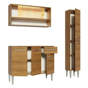 - Itens inclusos: Um Armário aéreo com duas portas de correr de vidro reflex e um nicho | Um Paneleiro com duas portas | Um Balcão com três portas, uma gaveta e tampo