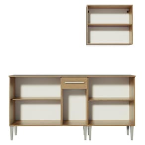 - Itens inclusos: Um Armário Aéreo com duas portas | Um Balcão com duas portas e tampo | Um Balcão com três portas, uma gaveta e tampo