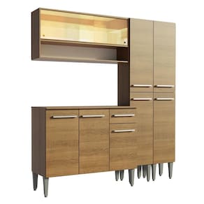 - Itens inclusos: Um Armário aéreo com duas portas de correr de vidro reflex e um nicho | Um Paneleiro duplo com quatro portas | Um Balcão com três portas, uma gaveta e tampo